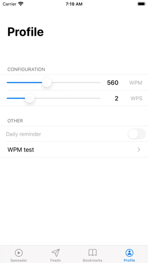 Speeader helps you train and break these habits by slicing up the news you would have read anyway in a custom word pr. minute and chunk size.