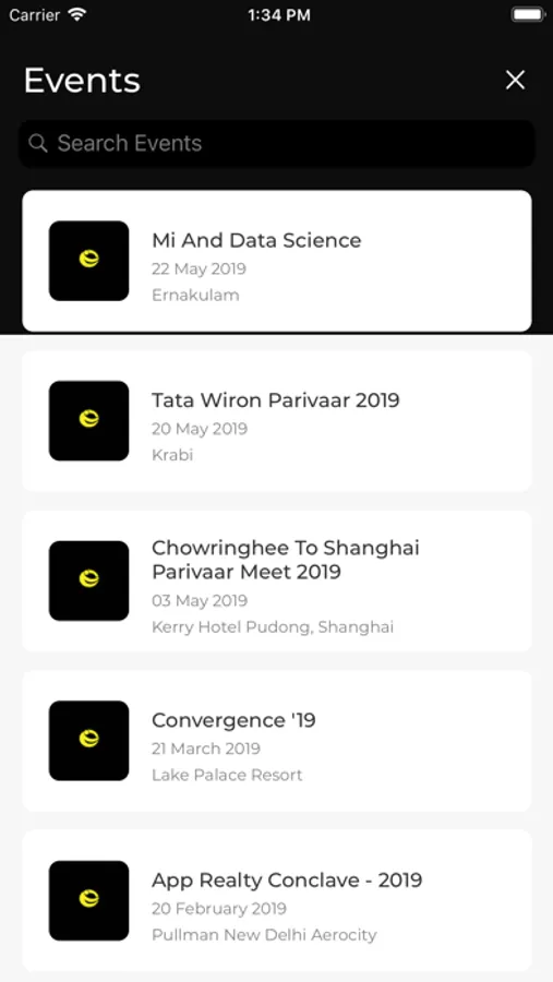 Here is the list of the main features of the Event app