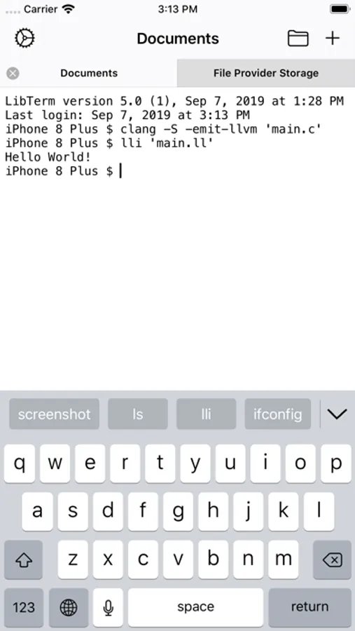 LibTerm is a command line interface for iPhone and iPad. Includes what you need for coding C programs!