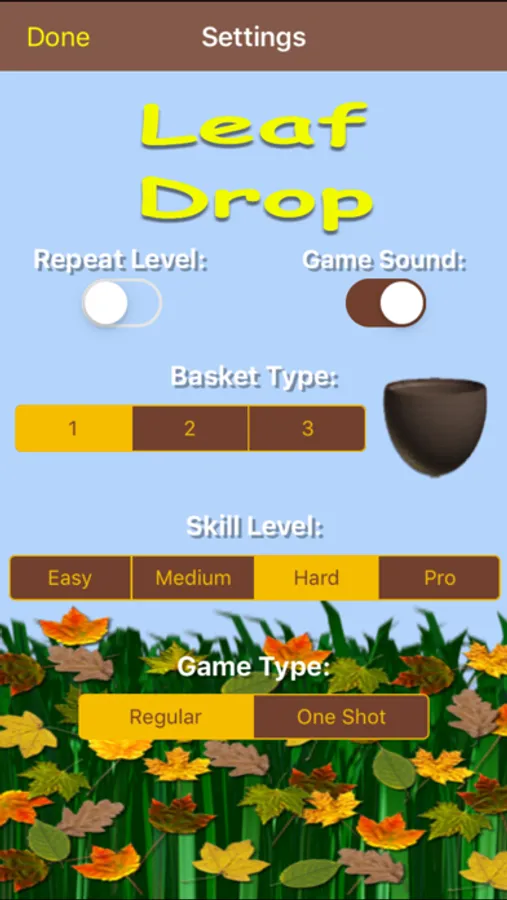 Move your basket from side to side catching the Leaves as they fall from the top of the screen. Catch the number of Leaves needed to complete each level. Each level gets more challenging. If you drop too many Leaves the game is over!