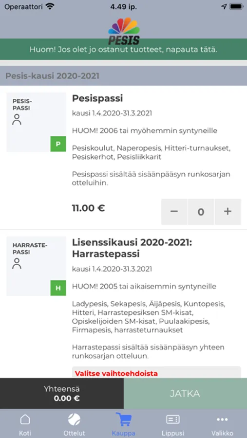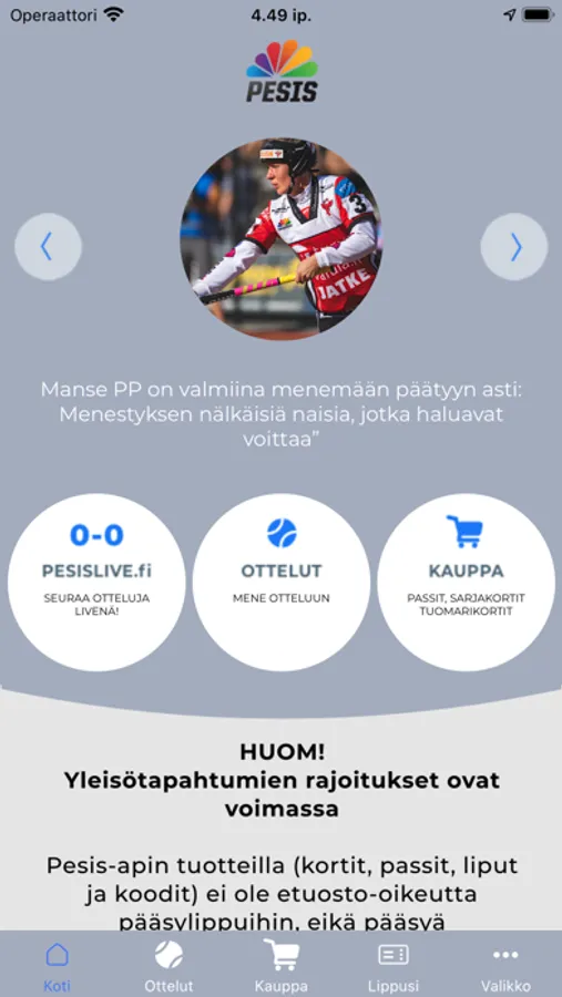 PESIS is the official mobile app of Suomen Pesapalloliitto ry. With the app you can redeem and use your free passes. The most common payment cards and methods are available.