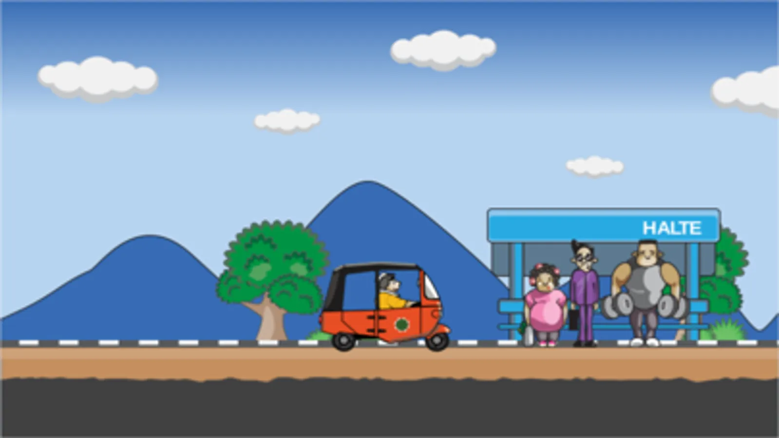 Mr Bajaj works as an auto rickshaw driver. The story starts from the suburb of Jakarta City. He must deliver various passengers, house wife, office person, old citizen and many more.