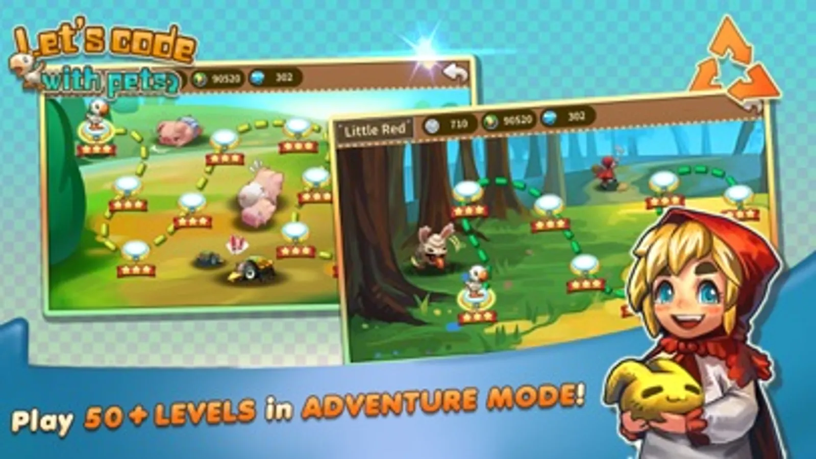 Let’s code with pets is a game to teach kids the basics of coding. It’s easy to learn programming skills and exercise logical thinking ability while taking adventures in familiar fairy tales in this game.