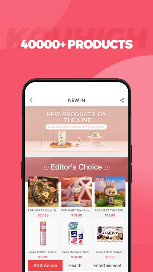 Kouhigh selects the best quality and hottest collectible toys and blind box, Asian food, instant fast food, Japanese and Korean beauty makeup, such as: POP MART, 52TOYS, FINDING UNICORN, BANDAI, SONNY ANGLE,etc;.