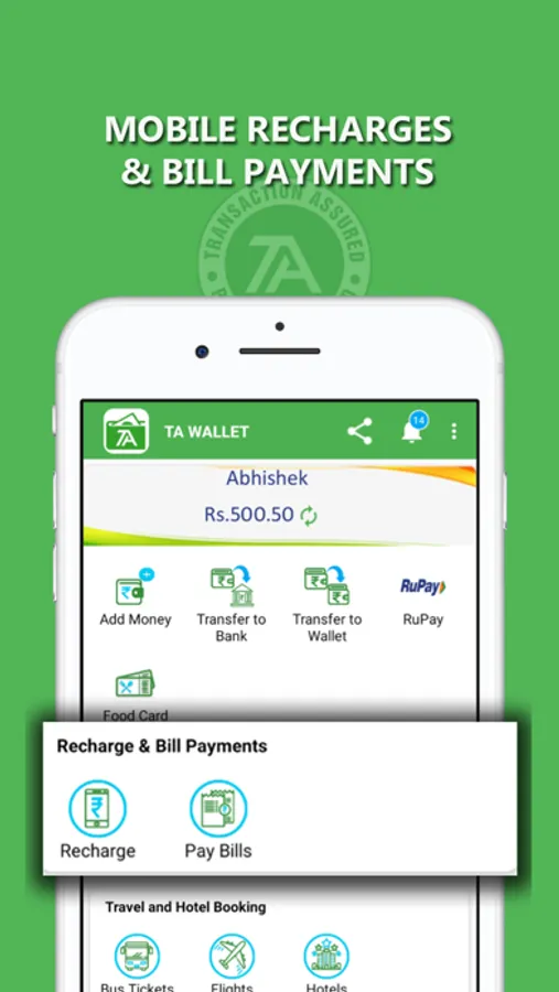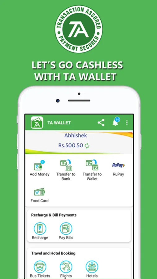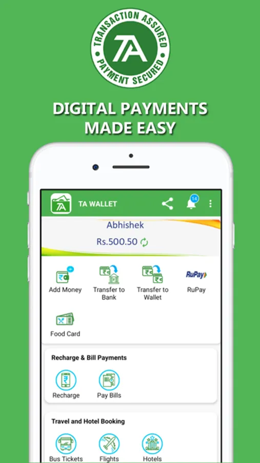 TA Wallet is a digital mobile wallet which can be used for cashless online payments. By using TA Wallet you can topup your mobile,pay postpaid, DTH, landline, Intenet, DataCard and Electricity bills.You can transfer money to another wallet or your bank account.