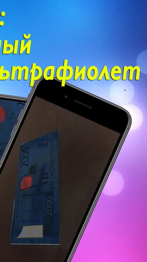 Наше приложение позволяет наглядно увидеть как должны выглядеть купюру при специальном свете.