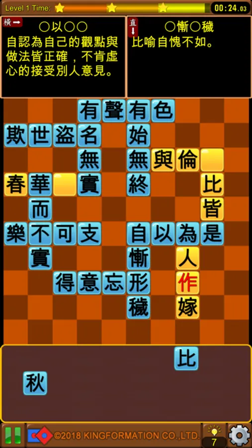 成語接龍-填填看遊戲主要由中文四字成語,或是常用辭彙組成,玩家可通過填字遊戲形式,學習中文四字格詞語,寓學習於遊樂。