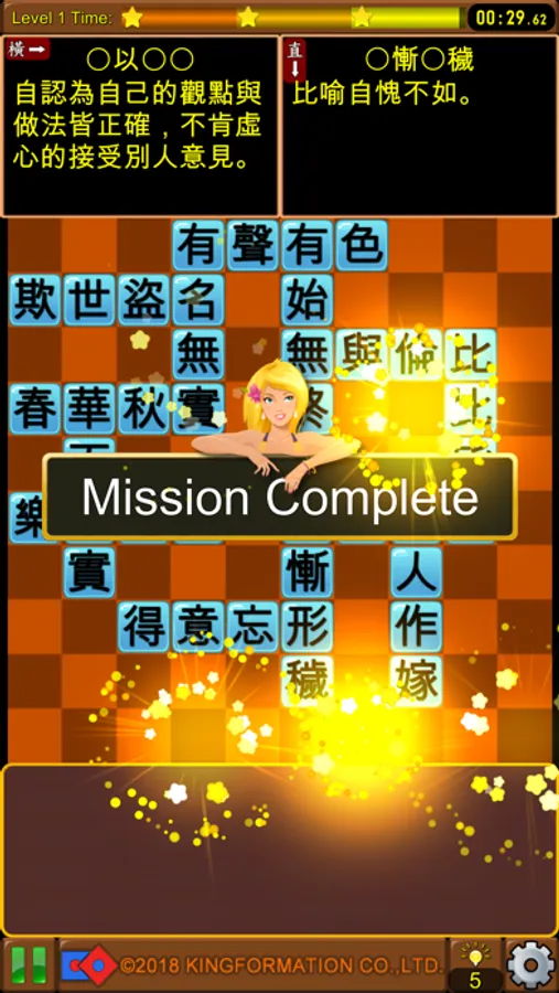 遊戲使用詞彙語,包括成語、俚語、俗語等,每個關卡約有12-16道填空題,玩家可以依照提示或是相鄰的詞句來填入正確的答案。