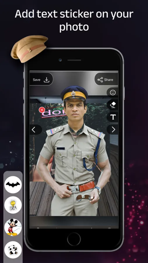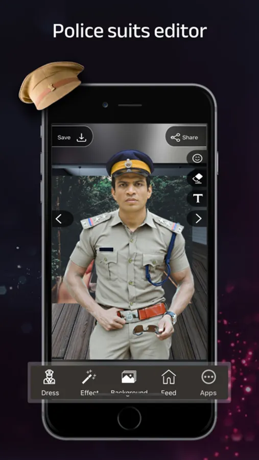 This is a Police Photo Editor and Police Woman Photo Design Maker for Stylish Beards, Mustache designs and for a woman. You will become stylish and handsome with this Men Mustache and Beard style changer. If anyone asks you how to get in police tell them to Use this Police booth to become a police man. Show the edited pic to your friends and ask them how am I when beard on my face like a police racer with police car racer and uniforms cop. With policeman uniform app in pulis suit. Use this app to make fistful commando photo suit or commando photo editor download police suit photo editor online.