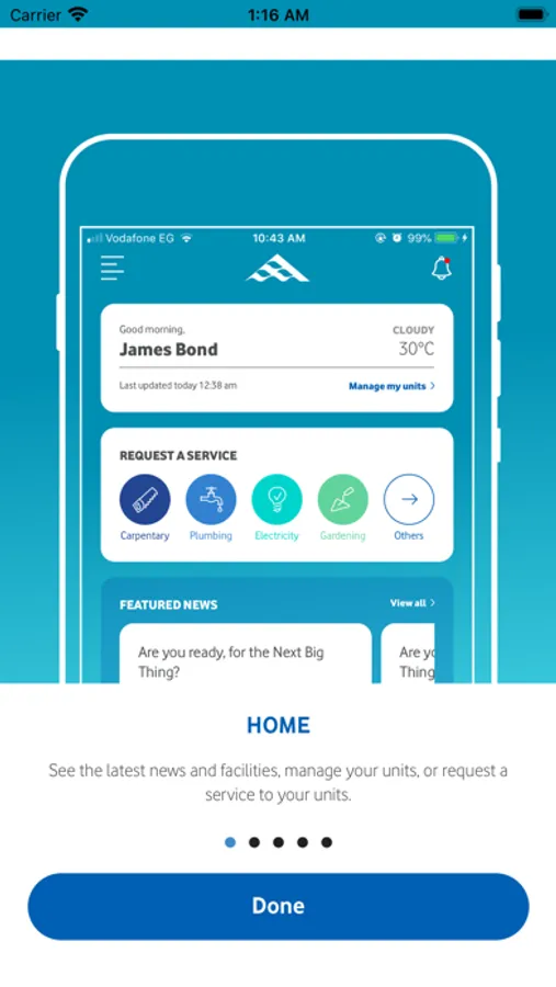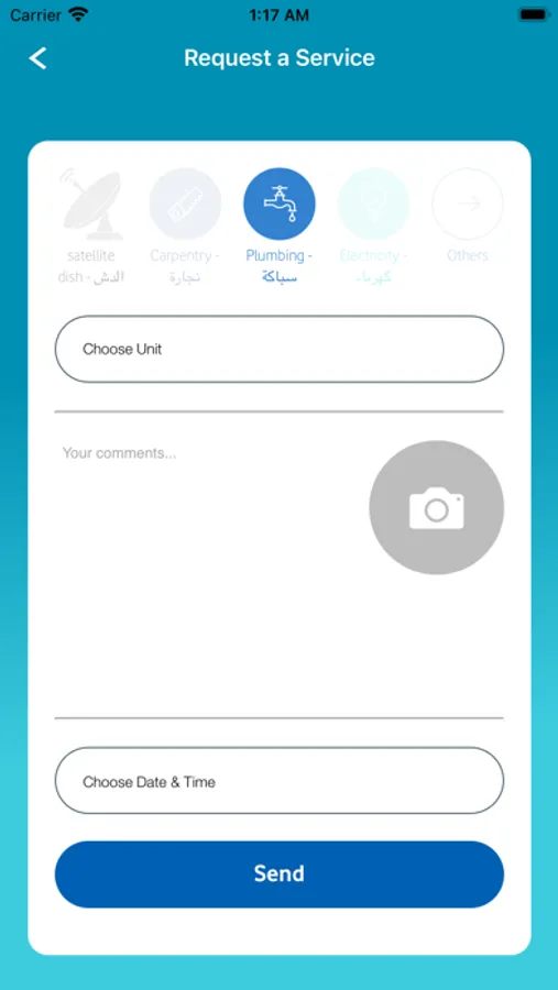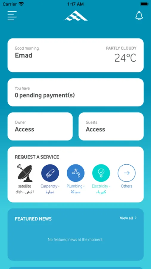 - Request services: you can directly request different services for your units through the app and monitor their status, and of course you can rate each service.