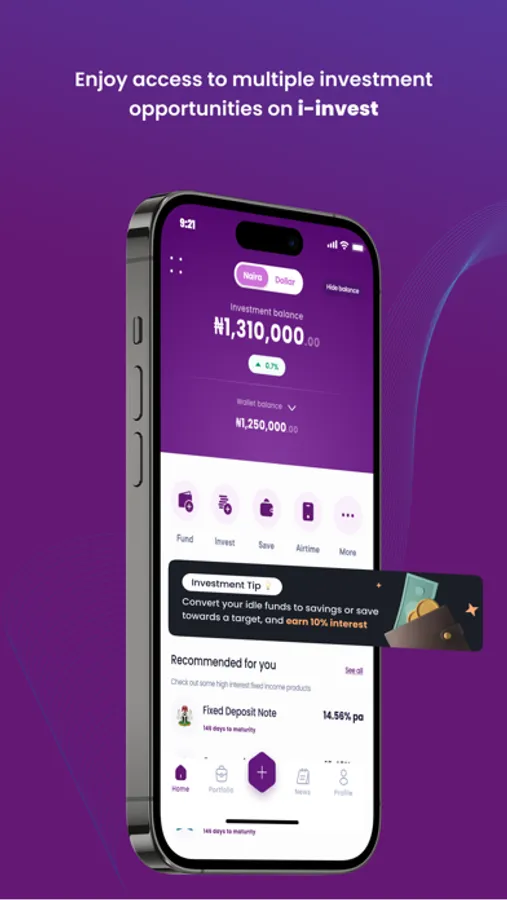 Enjoy higher return on investment than your regular saving account without stress on i-invest, with no deposit fees or monthly charges.