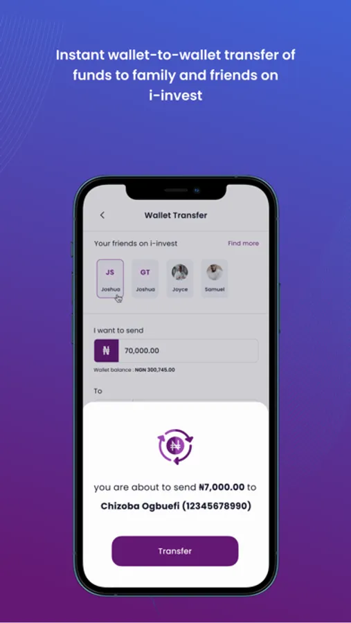 Top up, withdraw, and transfer funds to family and friends on i-invest, from your wallet.