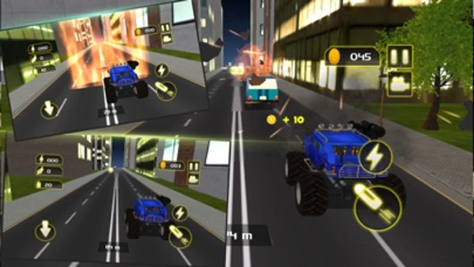 This is an American big foot car city race speed game, simple operation, by controlling the car, escape to other vehicles, can also shoot them, go forward to get the highest score!
