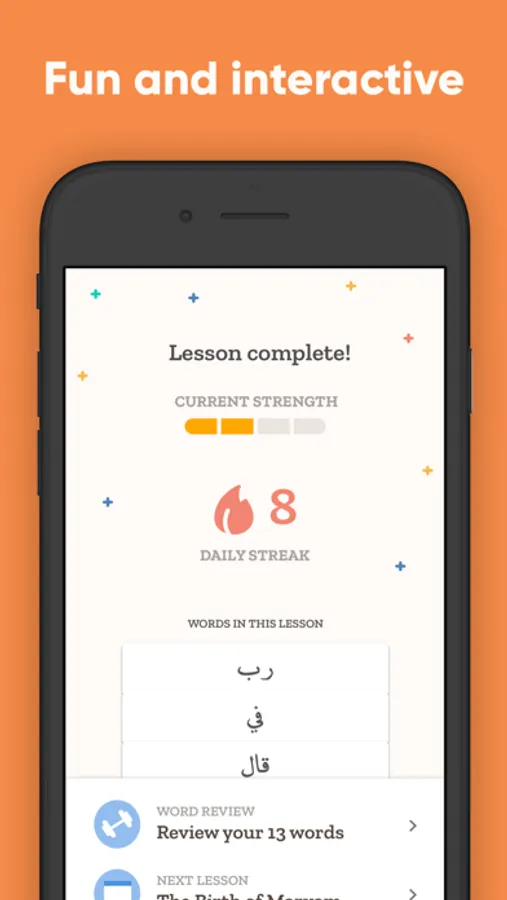 Not only that, but our highly effective spaced repetition method of teaching increases how much information you retain, so learning Quran Arabic can be fast, too!