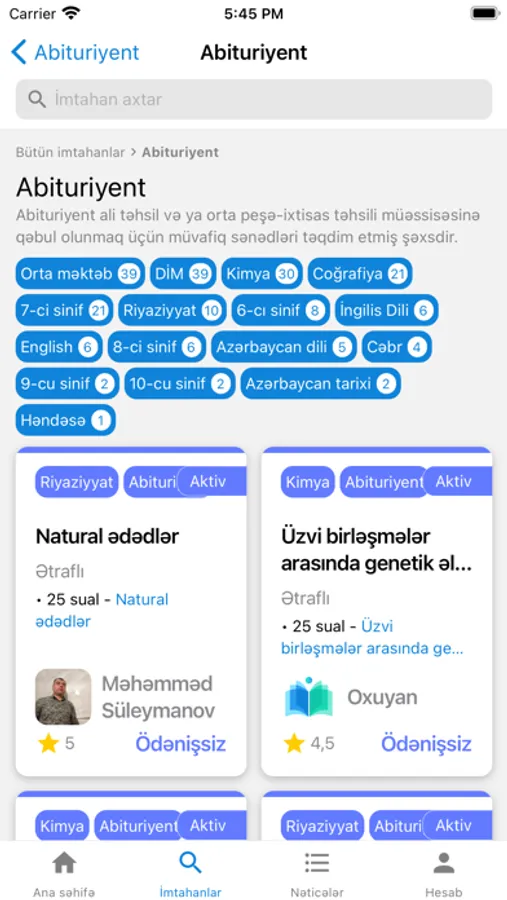 - Canlı imtahanlara qoşul və hər kəslə birlikdə imtahan ver.