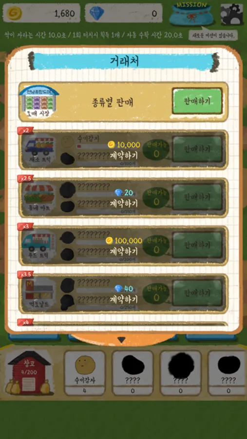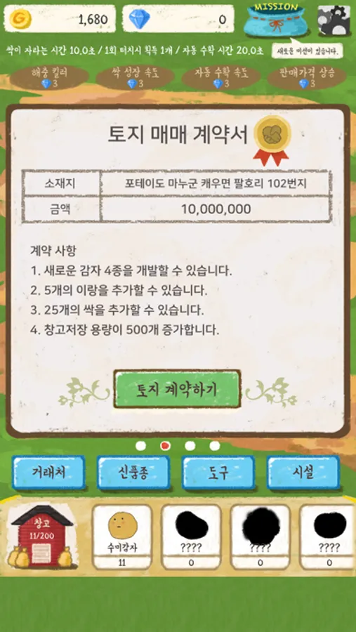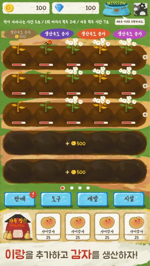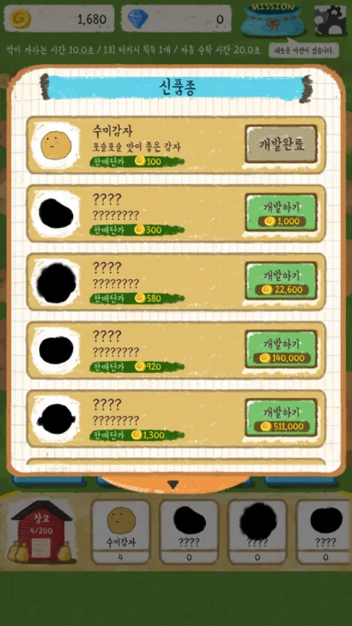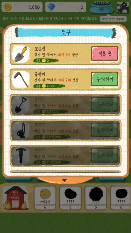 *. 도구와 시설을 업그레이드하여 더 빠르게 감자를 획득합니다.