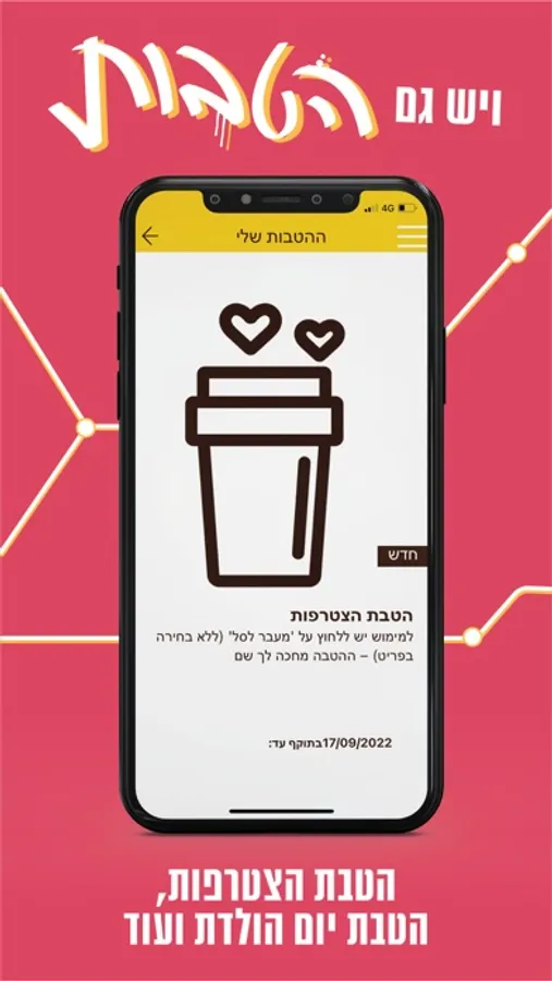 בנוסף לבינקויינז, באפליקציה תיהנו מכל מיני הטבות (למשל, קפה ראשון ב-5 שקלים למצטרפים חדשים, הטבת יום הולדת) ומבצעים מפנקים ("דיל החודש" ועוד).