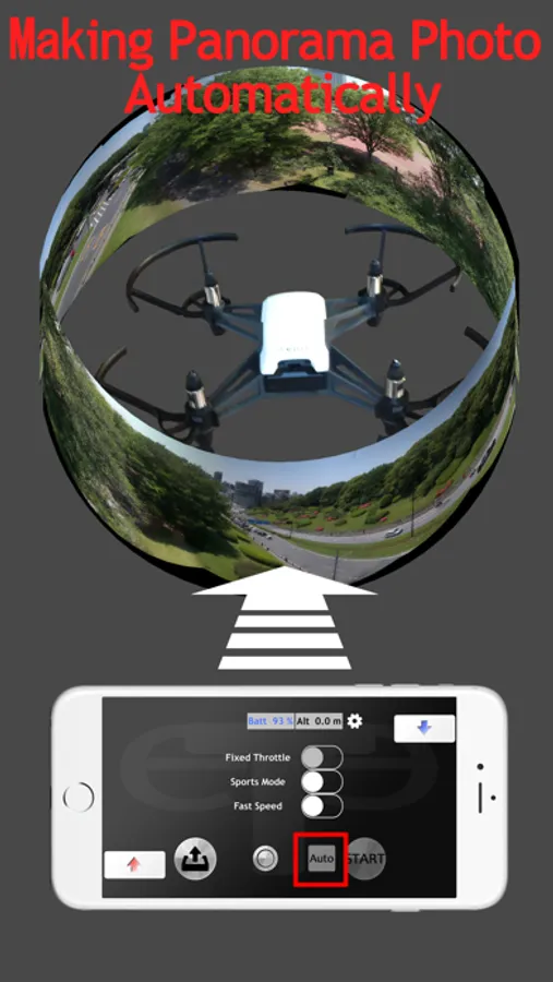TELLO starts taking pictures for pieces of panorama by rotating 360 degrees.
