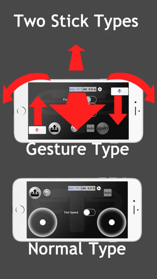 The gesture type can control TELLO just like using an actual flight control stick by moving the iPhone.