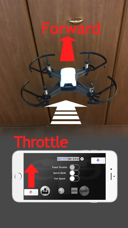 When you turn on the fixed throttle switch, the throttle will be fixed even if you release the throttle. Then, TELLO moves forward at a constant speed, you can control it as a fixed wing aircraft.