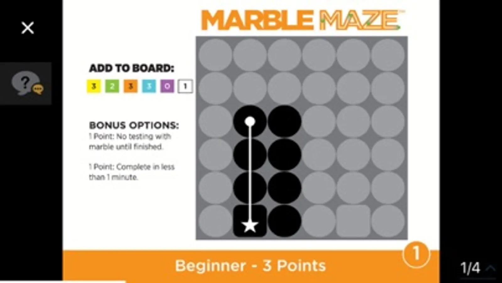 WATCH VIDEO SOLUTIONS: Our Marble Maze game can be very straightforward OR very challenging depending on your thought process. As a result, we've included step-by-step videos for all 60 of the challenges included with this game. We hope these videos make it easier for you to play and take your maze building skills to the next level.