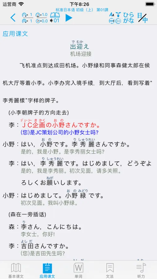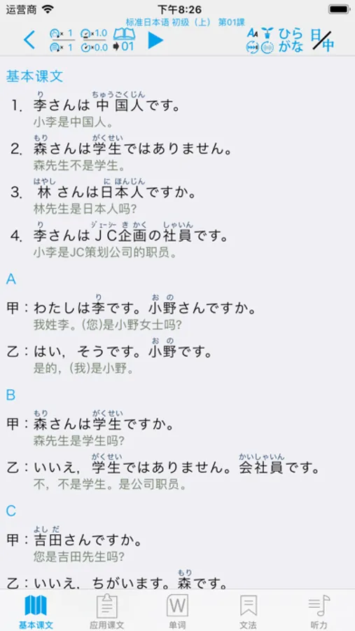 APP参照《新编日语》课程制作而成。包含了初中高供6册的课文,单词,语法及听力等4大部分。全部的课文,生词(中日双音)和听力都配有发声。您可以通过手机和平板进行下载。方便任何有需要的朋友方便快捷的学习,能够快速强化您的听,说,读,写能力。本APP集成了超强的复读功能,可以根据自己的需要对每个单词、每句话或者整篇内容进行一遍或多遍的复读,洗脑式的复读可以加强记忆。同时,您还可以在“设置”里进行设置后台播放,方便您在移动中使用。