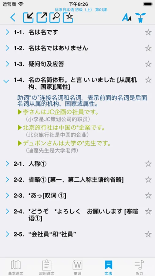 ◎在文法界面,右上角有一键打开全部文法的按钮