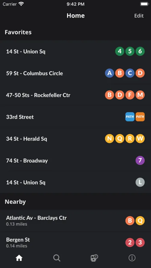 Making it easy and hassle-free to access subway times for the entire New York subway system. These are the same times that are posted on the monitors at the subway stops, in a convenient app on your phone. Save your most-used stops for easy and quick access. Or, see the times for nearby stops if you're not quite sure where you are.