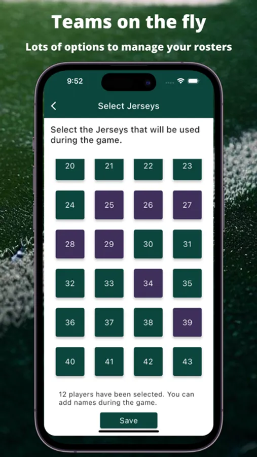 Start play counting in less than a minute. Select the Jerseys and go. Players can be edited while the game is in progress.
