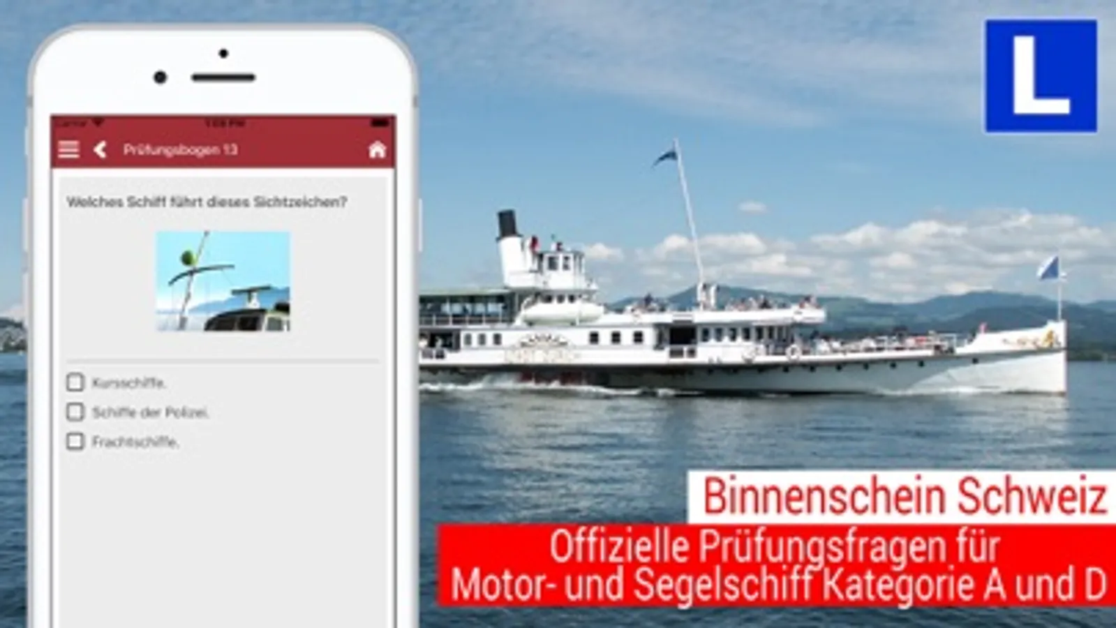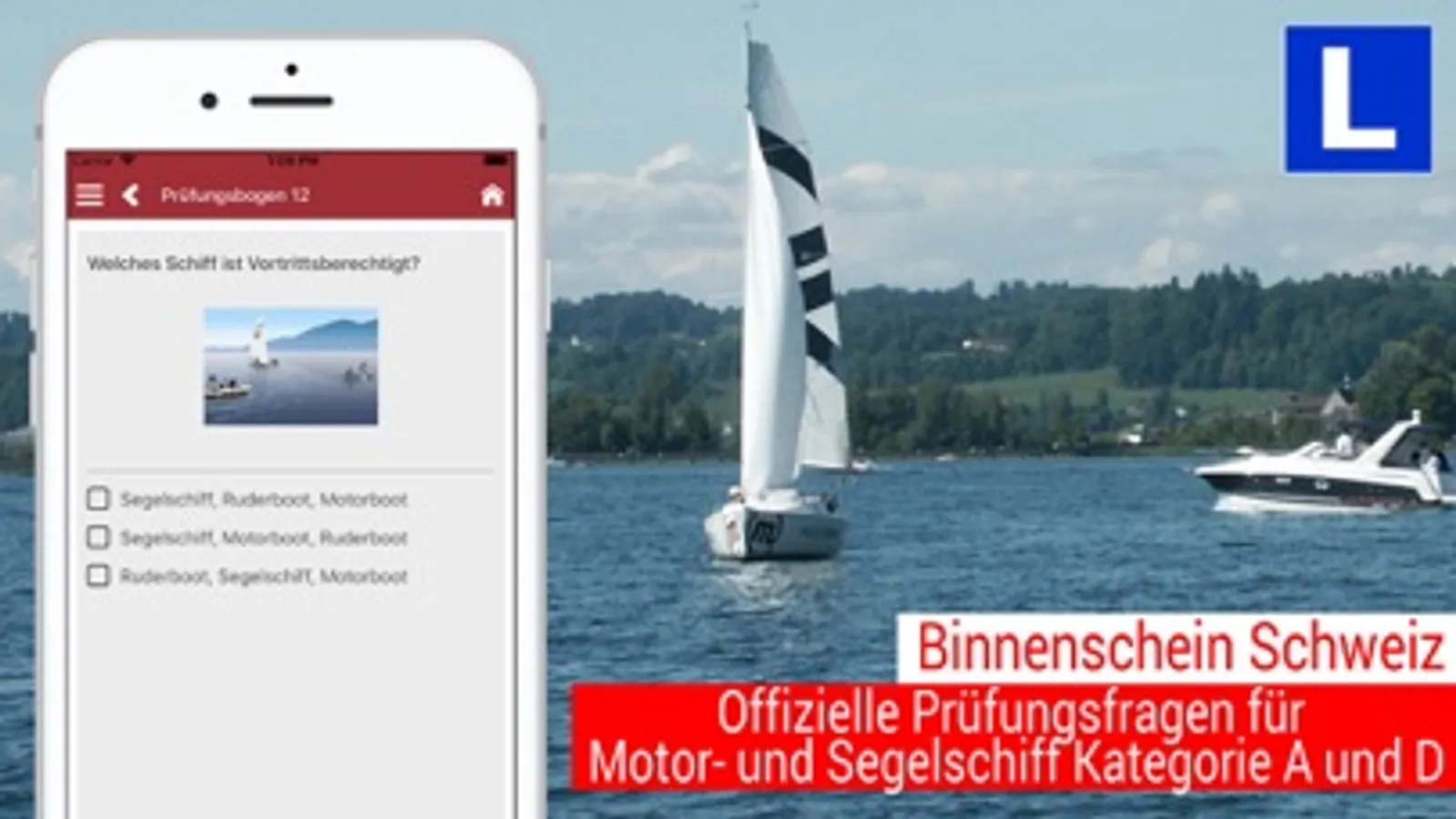 Lernapp für die Vorbereitung auf die theoretische Prüfung für Motor- und Segelschiff Kategorie A und D mit den offiziellen und aktuellsten Prüfungsfragen, sowie dem vollständigen Nachschlagewerk "Gute Fahrt auf schweizerischen Gewässern".