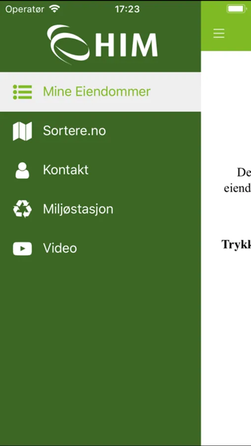 Applikasjonen er koblet mot sortere.no, der du får detaljert informasjon om hvordan ulike typer avfall skal sorteres. Her får du også kart med informasjon om nærmeste returpunkt for bl.a. glass- og metallemballasje. Applikasjonen viser også kontaktinformasjon til HIM.