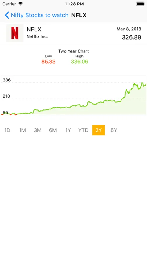 Nifty Stocks only loads the data that is required to update the stocks you are viewing. This makes the app much cleaner and faster than there stock apps.