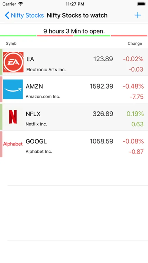 Nifty Stocks was created to be a simple and clean stock app. It allows you to create any number of watch lists and add any number of stocks to each list. You can easily remove lists and stocks from lists. No nonsense, no signup, no email, no personal data is collected. In fact, no data is collected at all.