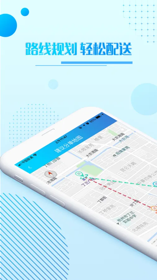 骑手可随时随地接单,系统规划高效配送路线,实现高效调度,运单追踪,全程追溯,轻松配送。