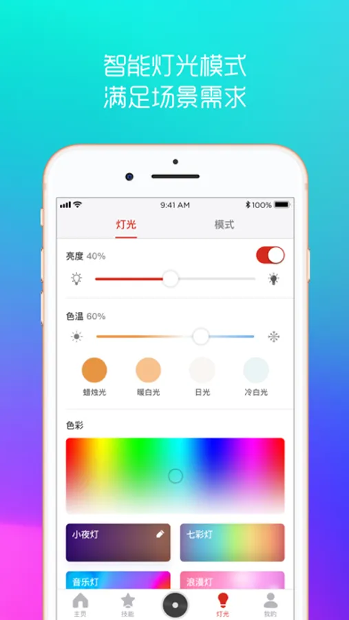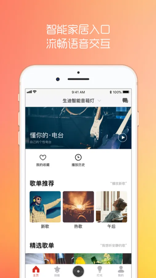 控制功能:可控制「生迪AI音箱灯」的音乐播放和灯光。