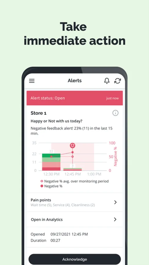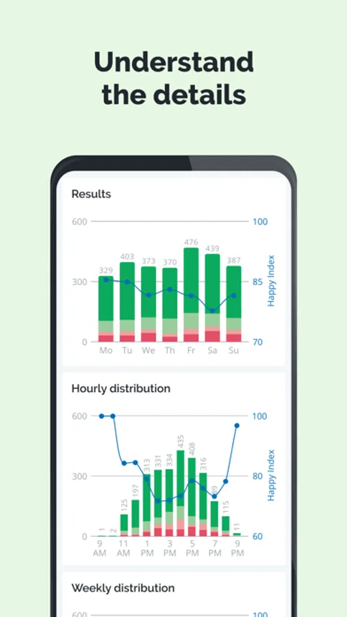 - Analytics is also where you manage your HappyOrNot solution and have all the tools in place for creating surveys, and managing experience points, users and subscriptions. You can use - Analytics any time, and any place, with a browser or the mobile app