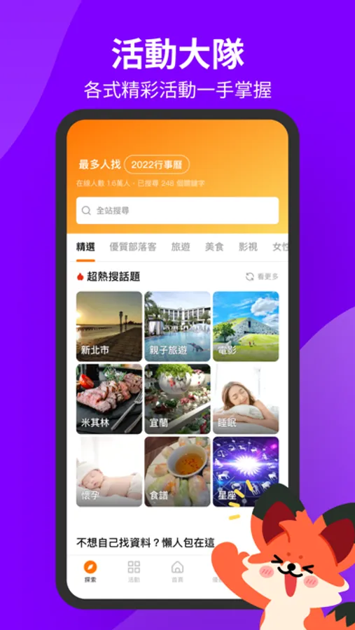 *快速搜尋:透過影響力標籤及推薦頻道快速獲得台灣熱門KOL的相關生活分享。