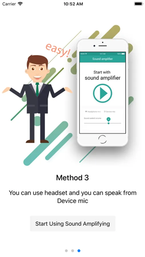 ذوي الاحتياجات السمعية يتعرضون للعديد من المواقف المحرجة خاصة عندما يكون لديهم قدر بسيط من القدرة السمعية، الذين قد يضطرهم بعض المتعاملين معهم من رفع الصوت بطريقة عالية. يقدم التطبيق القدرة على رفع صوت المايك للموبايل وتضخيمه في سماعات الرأس كي يتمكن ذوي الاحتياجات من سماع الصوت بطريقة واضحة.