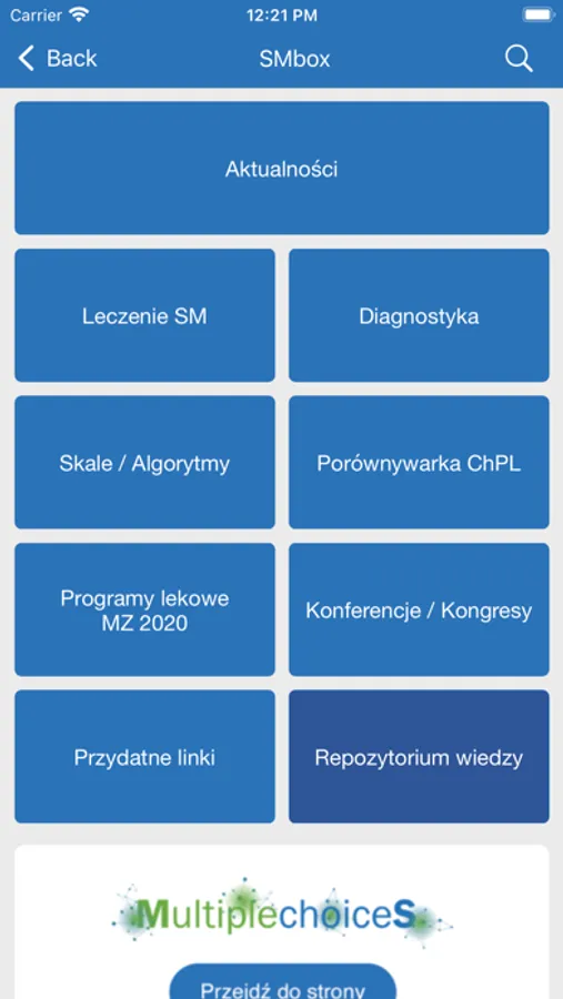 SMbox to aplikacja z serii 3Clicks, przeznaczona wyłącznie dla lekarzy. SMbox oferuje szybki i intuicyjny dostęp do informacji na temat diagnostyki i leczenia stwardnienia rozsianego.