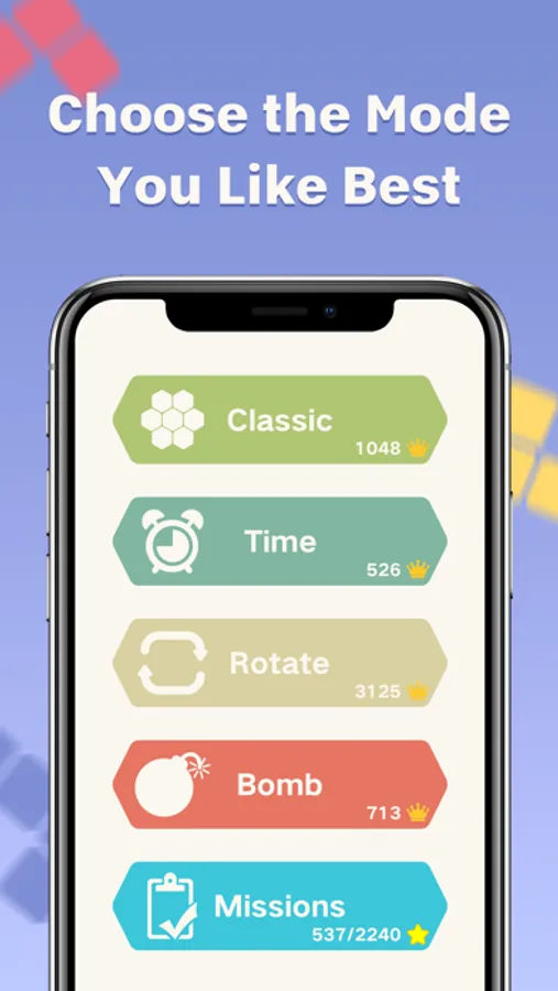 5. Each mode has five sub modes: Classic, Time, Rotate, Bomb and Missions.
