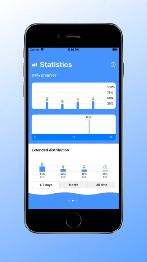 Droplet wil assist and track your hydration trough the day, you will never forget to drink a glass of water again. The user interface is easy and clear , no complexity, with a view swipes you get all the information you need.
