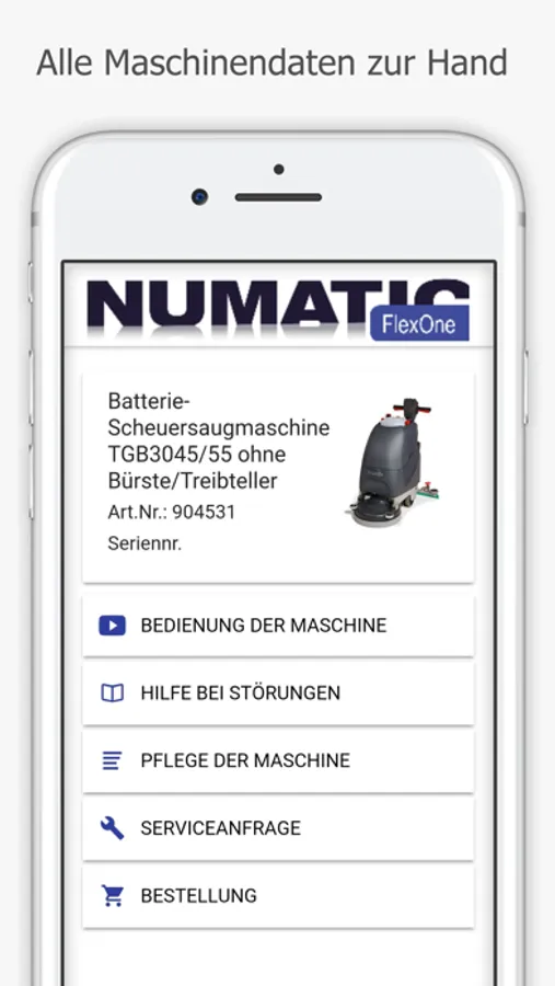 Per QR-Code oder noch schneller per NFC-Chip-Erkennung werden alle Maschinendaten in Numatic FlexOne aufgerufen