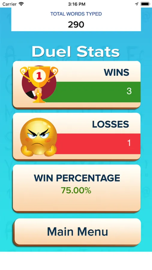 Track your wins, losses, scores, and other numerical values with the Stats page so there can be no doubt about who holds the title of the ultimate text champion.