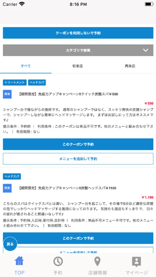 お得なクーポンが配信されます。ネット予約時にクーポン利用での予約も可能なので来店時もスムーズに施術頂けます。