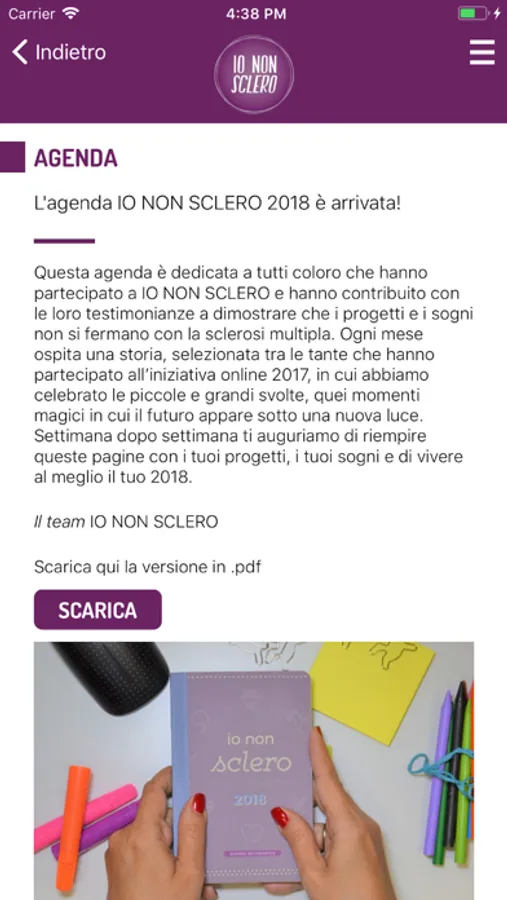 La App gratuita IO NON SCLERO permette di accedere a tutti i contenuti del progetto, realizzati dal 2014 a oggi e di partecipare alle iniziative in corso, condividendo la propria storia.