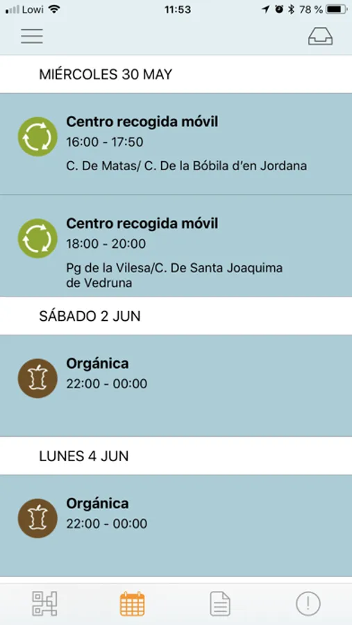 • Consultar el seu historial per saber quins residus ha llençat i quan ho ha fet.