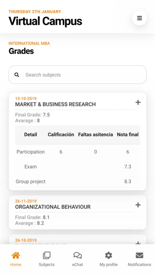 •Notices - view all notices concerning your activities in EADA (news, announcements, the publication of grades, pending satisfaction questionnaires, etc).