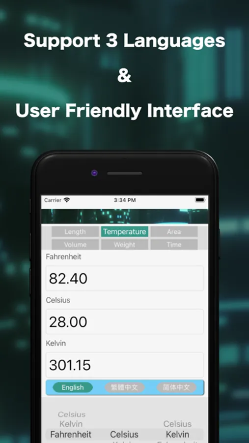 * Scroll up and down to switch different units, results will be calculated and shown automatically