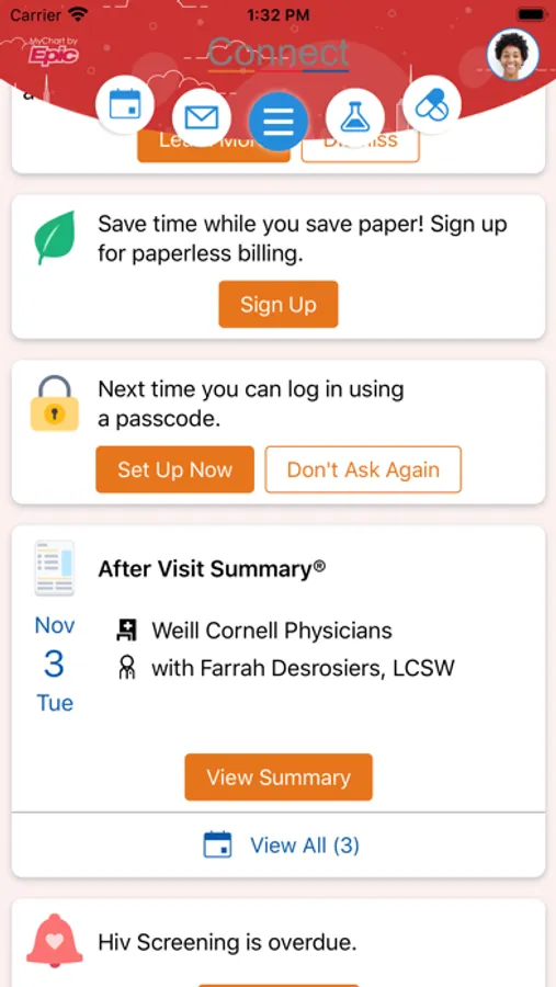 If you are already a patient of a Weill Cornell Medicine physician, log in to the app using your Weill Cornell Connect account and take advantage of these helpful features: