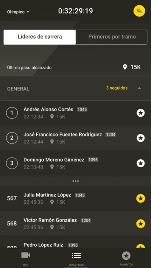 Además, podrás ver de forma rápida cualquier clasificación al instante: por categorías, los primeros corredores por tramo y el último punto alcanzado de los participantes a los que sigas.